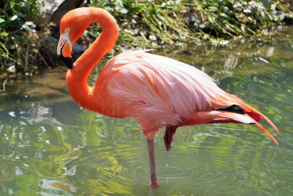 | 解説 | 餌は水中のプランクトンや水生昆虫や藻類。長い首を下に向けて、クシのついたくちばしと舌を使って餌をこしながら食べる。盛り土を造って営巣し、ヒナがかえると素嚢(そのう)から分泌されるフラミンゴミルクを飲ませて育てる。 |