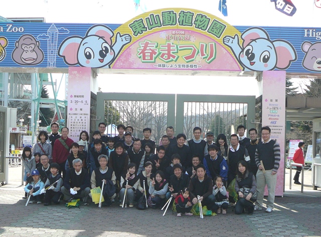 当日は最高気温が20.2度まで上がったさわやかな青空の下、約1時間かけて東山動植物園の外周道路を清掃していただきました。お子様も含めて約100名にもなろうかという、ビックリするくらい大勢の方に参加していただきました