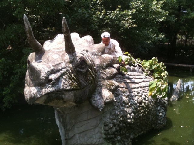 先日、72歳になるトリケラトプスの首に木が刺さりあまりに痛々しいので治療?してもらいました。太田先生は植物管理人の方で古代池の中に住んでいるトリケラトプスの背中にひょいと乗り、あっ!という間に終了でした。