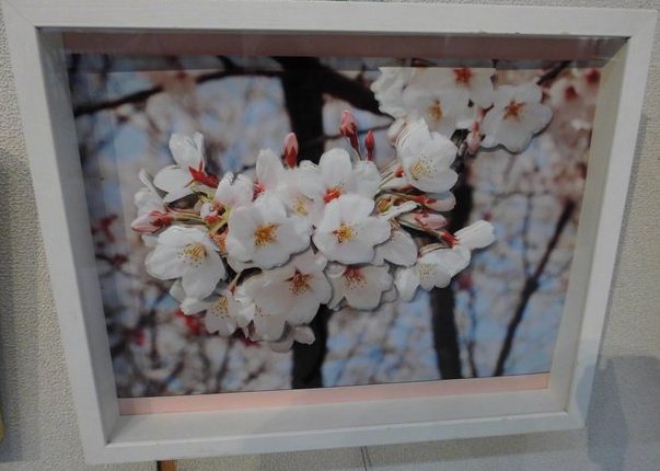 作品をカメラで撮影しましたが椿や桜の“立体感”感じていただけますか…?作品のニュアンスは是非、会場の実物でお楽しみくださいね。