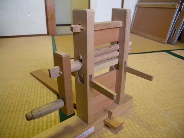 東山植物園合掌造りの家の裏にある畑で、昨年、育てられていたワタ(三河綿)の実のタネ取りを、昔ながらの専用の道具「くくり機」を使用して行ってみませんか?