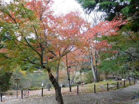 星が丘門から下っていくと、日本庭園が見えてきます。こちらも徐々に色づき始めました。