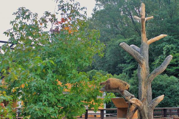 動物園でも紅葉が見られます!こちらはおととい、10月19日のキリン舎の様子です。