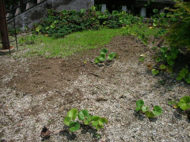 暑さを背中に浴びながら、Oさん、Wさん、Iさんは草取り。草取りを始めて30分の写真がこちら。