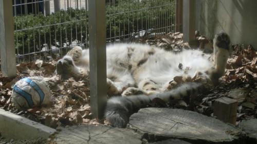 食肉小獣舎の動物たちも、ぽかぽか陽気の日には日なたでウトウトしている事が増えてきました。そーーーっと近づいても気付かれて目を覚ましてしまうことが多く、なかなかうまく撮影ができないのですが、熟睡中だったのかいくつか気持ちよさそうな姿を写真に収めることができたので、ご紹介します。