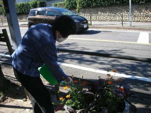 今回は10月19日と11月2日の活動についてご報告したいと思います。両日とも有志が集まり、世間話をしながら花殻摘みや草取り、掃除に励みました。まずは10月19日の活動の様子。