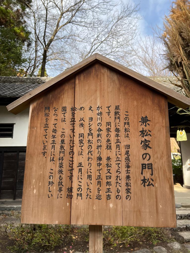 植物園にある武家屋敷門は、大正8年まで兼松家の屋敷門として使用されていたものを昭和42年に現在の場所に移築したものです。そのため植物園でも兼松家の伝統にならい、葦の門松を立てて正月をお祝いしています。