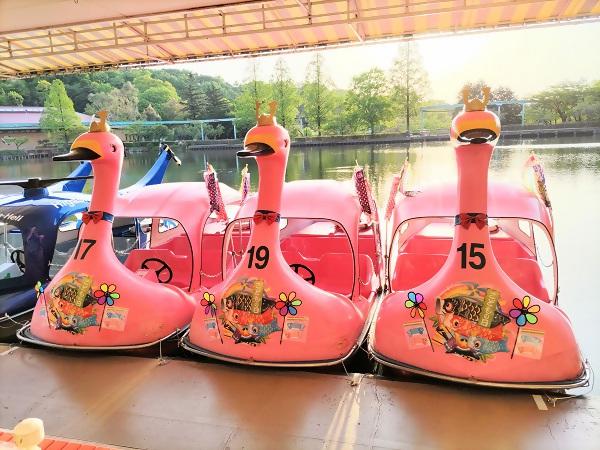 こどもの日バージョンのスワンボートは4台あります。5月7日(日)までの期間限定で乗船できます。
