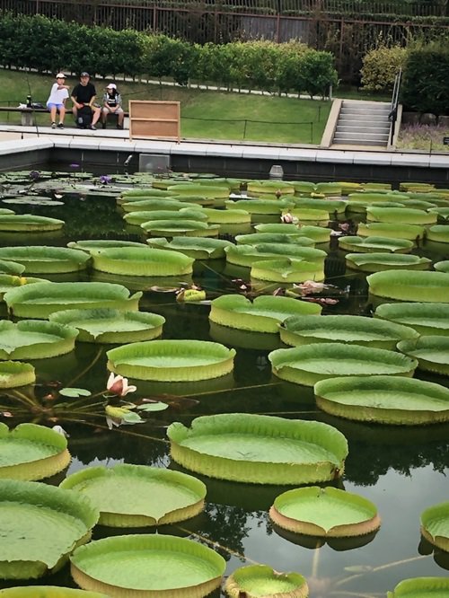 洋風庭園ではまだまだ温帯スイレン、熱帯スイレン、パラグアイオニバスが咲いています。