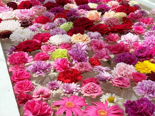 産学官連携の取り組みとして、(有)メイガーデンズ代表の柵山直之さん監修のもと、東山植物園と椙山女学園大学とともに、母の日の後に出るロスフラワー(廃棄される花)を利用して、お客様をもてなす「フローティングフラワー」という取り組みも行っています。売れなくなった花に新たな付加価値を付けることで、来園者を楽しませるものになるという発想の転換が、学生の学びにも繋がっています。