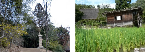 昭和31年に白川村から移築された合掌造りの家の周辺には、屋根の材料を供給する「郷の茅場」、燃料を供給する「郷の薪炭林」など白川郷の生活と結びついた植物を展示する場を設けました。奥池水際には田んぼも作られ、白川村からいただいた古代米が栽培されています。
