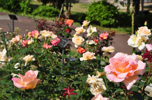 こども動物園に隣接するバラ園では四季折々のバラが楽しめます。特に春と秋には多種多様のバラが咲き乱れます。