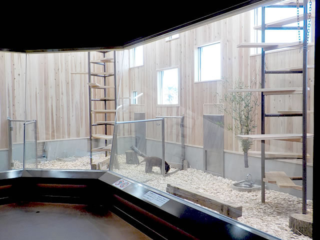 新たにレッサーパンダ舎が完成しました。高低差のある地形を生かした運動場や、空中通路など様々な視点からレッサーパンダの姿をご覧いただくことができます。
