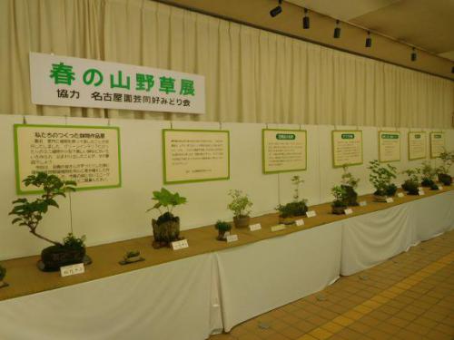 名古屋園芸同好みどり会さんによる、手作りの鉢に山野草の寄せ植えをした作品などの展示です。